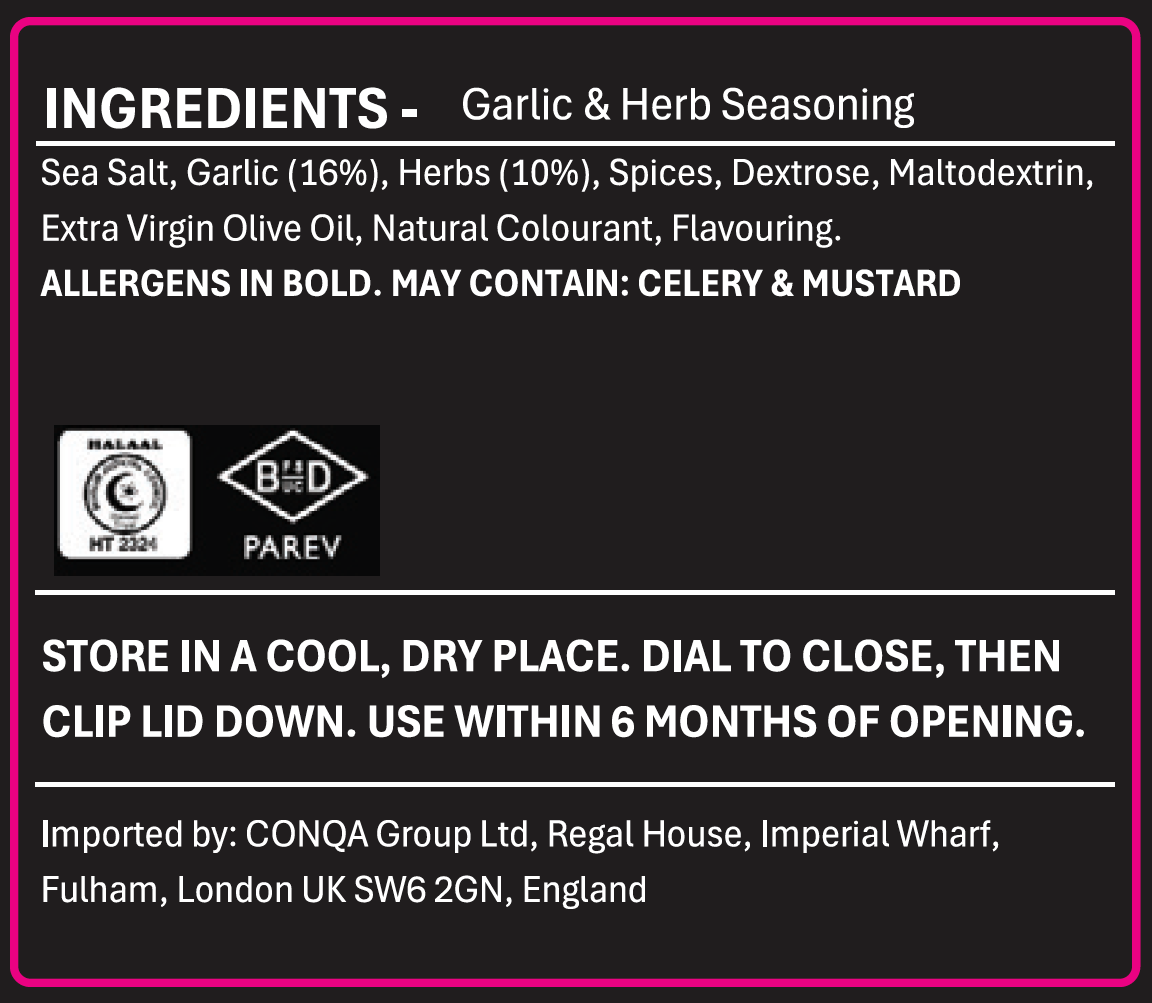 Ina Paarman Garlic & Herb Seasoning is crafted with natural ingredients. Perfect for enhancing chicken, fish, vegetables, or pasta. Our versatile spice blend adds a deliciously savoury and fragrant touch to any dish.